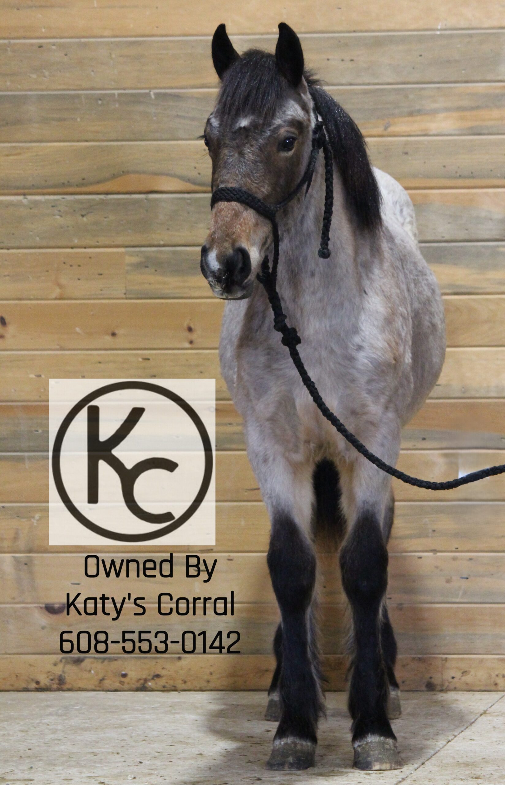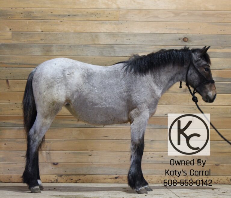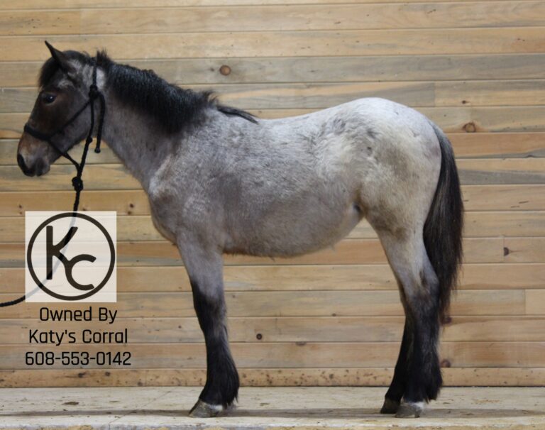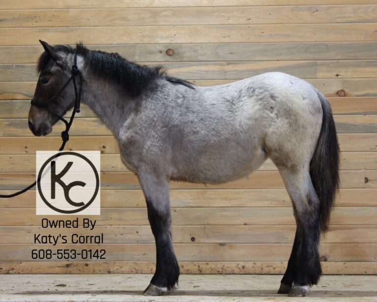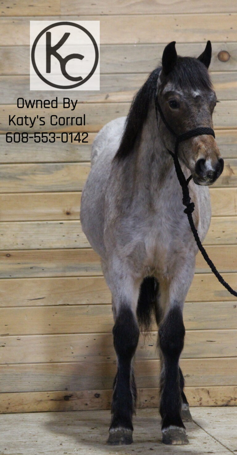 Flicka is a bay roan yearling (born July last year) filly out of a thirteen three hand draft/pony cross mare and by a sixteen hand percheron stallion. She stands forty nine and a half inches tall right now. She is absolutely ADORABLE in person. She has a cute head, kind eye, big bone, plenty of feathers and will be a TANK when she matures. Flicka has had lots of handling. She will lead/tie/trailer/bathe/pick her feet etc. This girl has plenty of athleticism and is a very pretty mover. She will have the brains, agility and body structure to excel in whatever discipline someone chooses to take her in. A suoer cute filly with a solid foundation that is ready for someone to take home and finish their way. Located in Dodgeville, WI and can ship anywhere in the U.S asking thirty five hundred