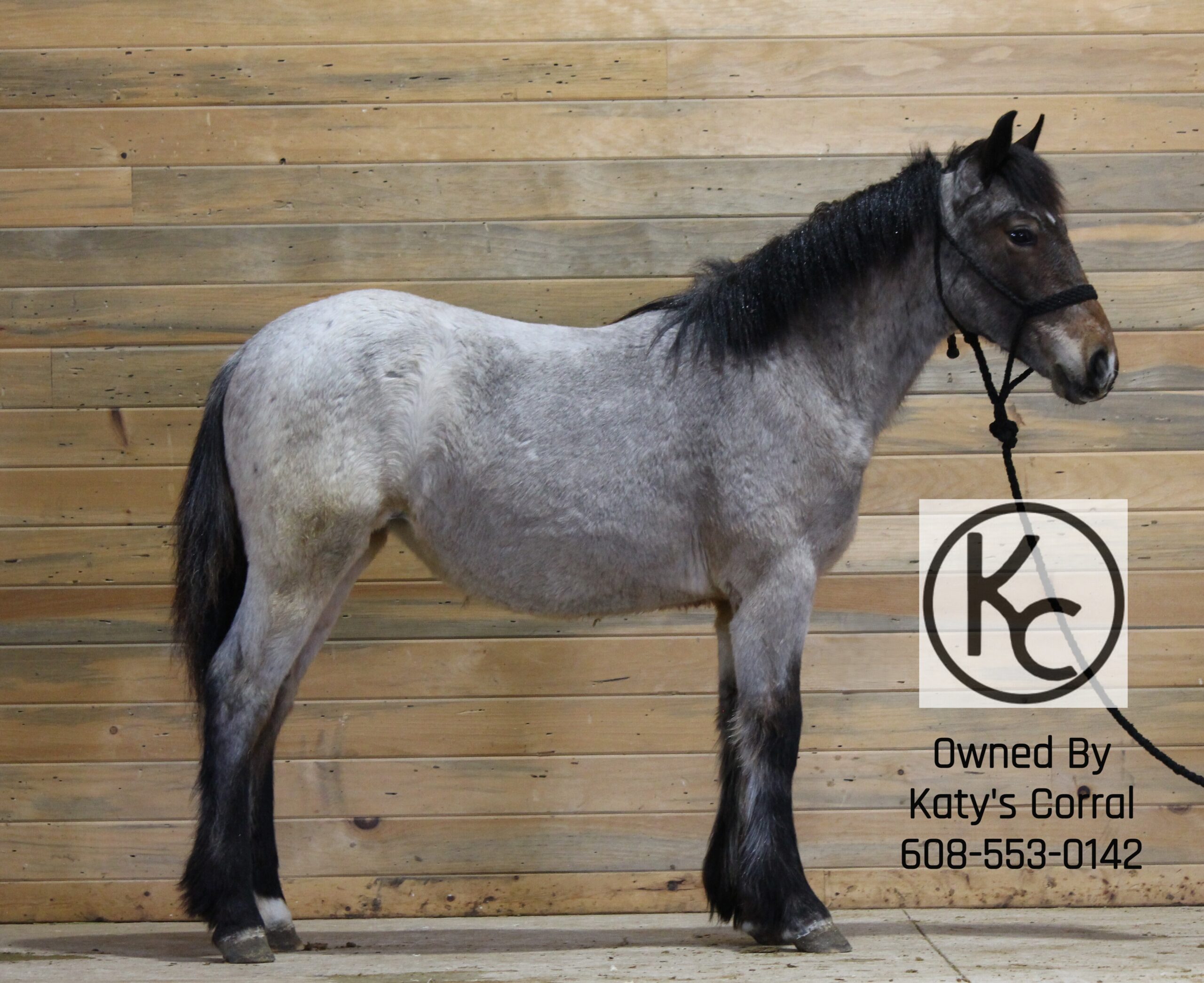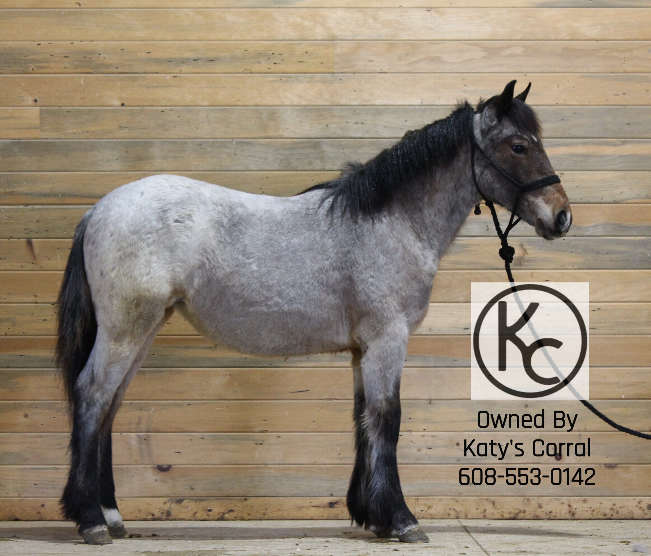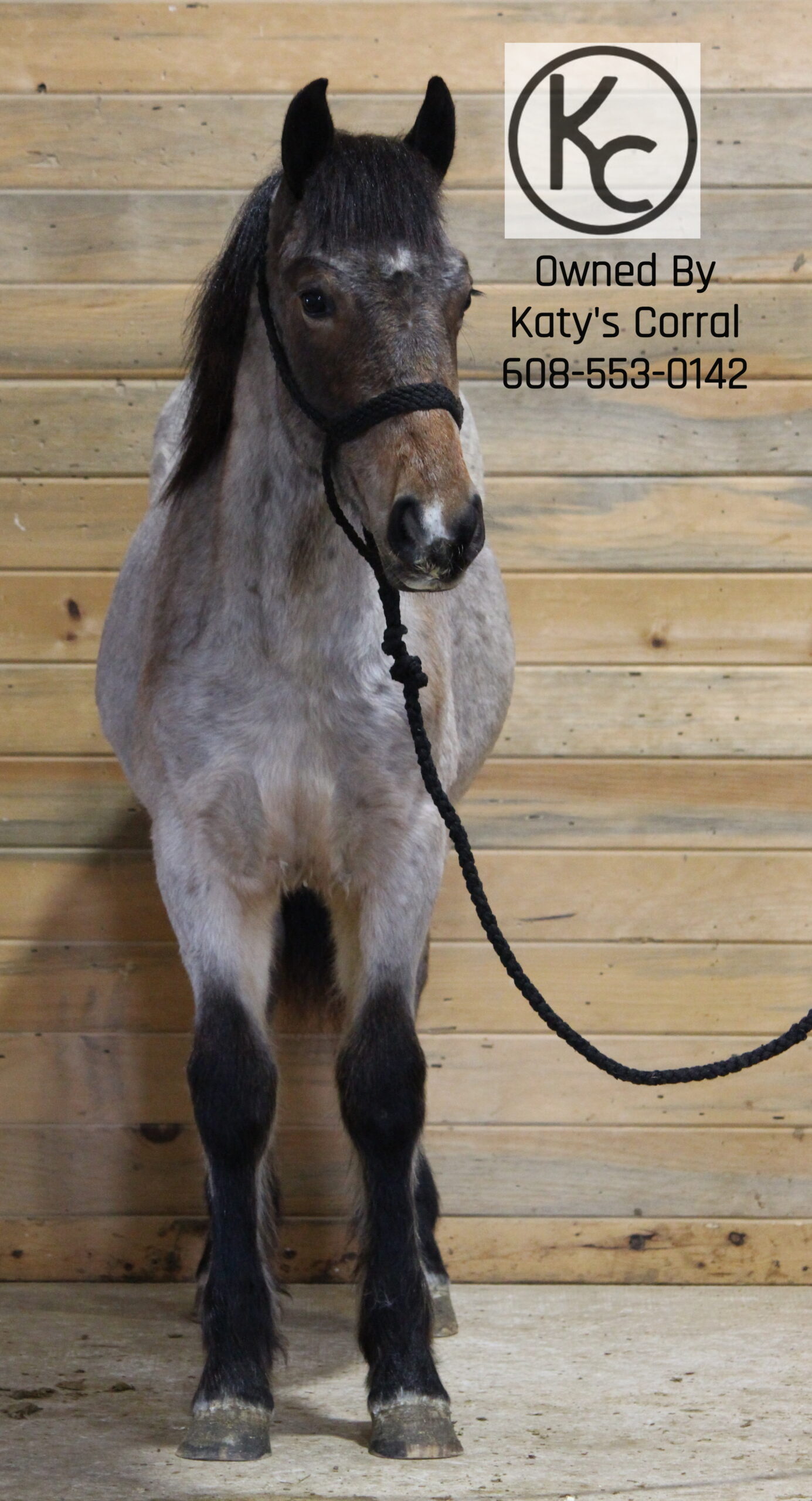 Flicka is a bay roan yearling (born July last year) filly out of a thirteen three hand draft/pony cross mare and by a sixteen hand percheron stallion. She stands forty nine and a half inches tall right now. She is absolutely ADORABLE in person. She has a cute head, kind eye, big bone, plenty of feathers and will be a TANK when she matures. Flicka has had lots of handling. She will lead/tie/trailer/bathe/pick her feet etc. This girl has plenty of athleticism and is a very pretty mover. She will have the brains, agility and body structure to excel in whatever discipline someone chooses to take her in. A suoer cute filly with a solid foundation that is ready for someone to take home and finish their way. Located in Dodgeville, WI and can ship anywhere in the U.S asking thirty five hundred