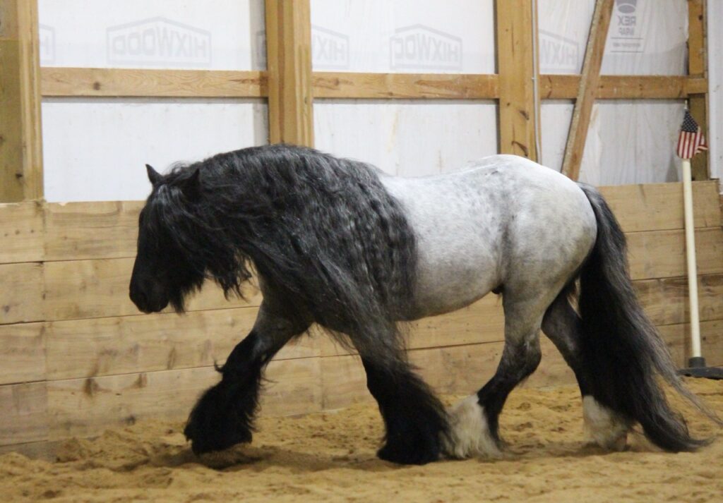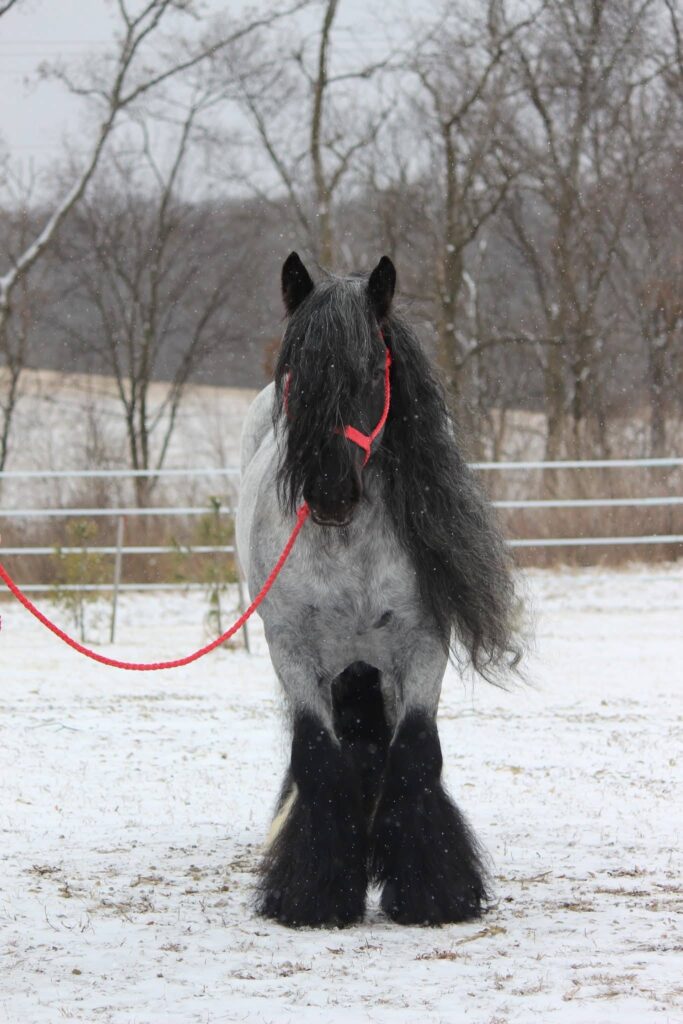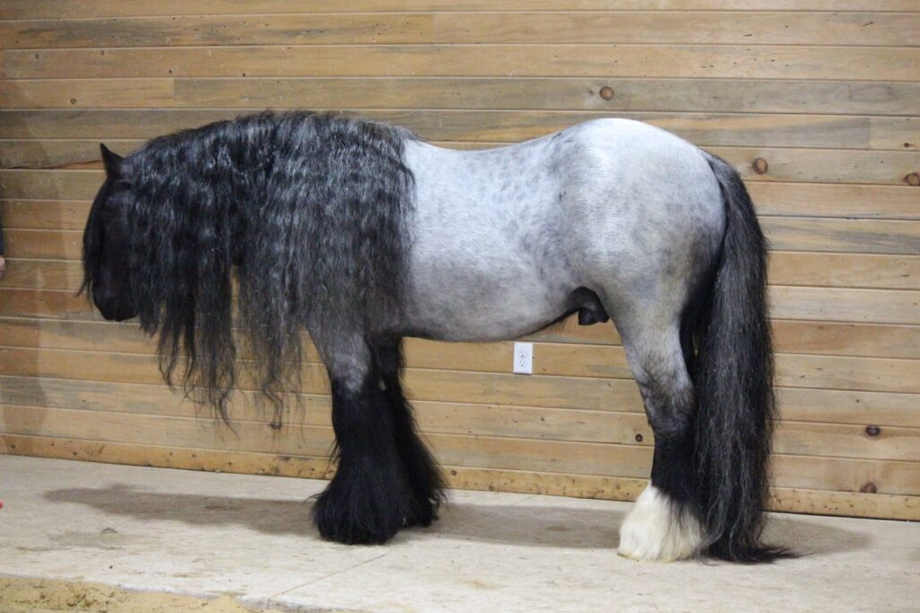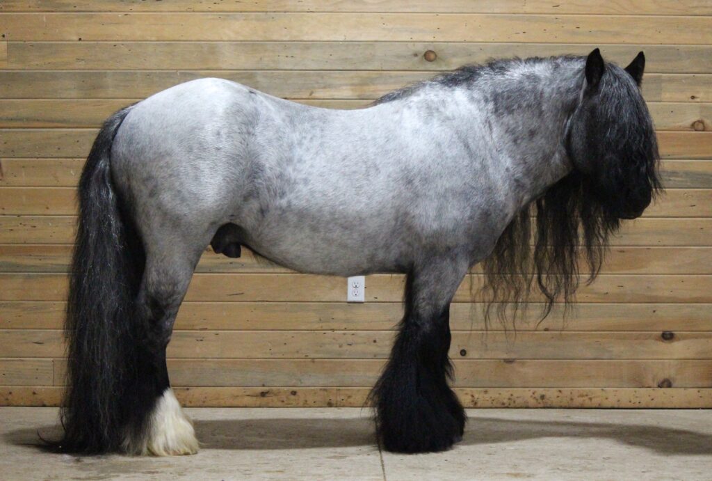 Thorn Hill Whiskeys Tonka is a blue roan registered Gypsy Vanner stallion registered in the Gypsy Vanner Horse Society (GVHS #GV07371). He is still growing but currently stands roughly 14.1 hands. He is FIS and PSSM negative. His color makeup is aa, Ee, Rn/N. He has had multiple years of foal crops and has had only one foal that wasn’t roan. He has thrown palomino roan, blue roan, bay roan, buckskin roan, red roan, and one bay. Offering live cover and fresh shipped available. Tonka has a sweet personality and has been extremely trainable and good minded. He is baby doll headed, has lots of hair/feathers, good conformation and is BLUE ROAN! He stamps his foals with feathering, cute heads, big bone and great minds. If crossing on non-gypsy mares, his foals can registered in several associations such as: International Gypsy Equine Association and Gypsy Horse Association crossbred registry. We are excited for this year’s foal crop out of him. We look forward to helping make your dreams of having a quality Gypsy or Gypsy cross foal affordable and easy! Join us on team Tonka! Please reach out to us with your email address to get a stud contract to get booked to breed to this wonderful stallion.