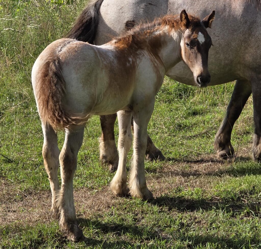 Red roan 3/4 Gypsy Vanner filly born April 29th.